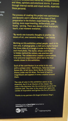 The COLORFOOD project created over 200 creations, with more than 100 chefs and artists from Israel, France, Italy and Ecuador. COLORFOOD was presented for the first time at the Jaffa Art Fair, and has since traveled from Tel Aviv, to Milan in Italy, to Vejle in Denmark, Marseille in France and Ecuador.
